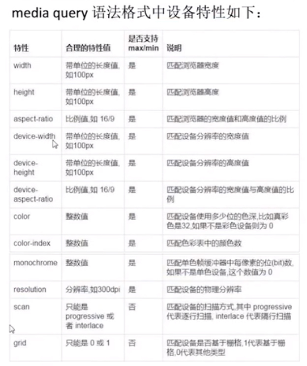 可用于检测媒体特性的有width,height、color等,在不改变媒体内容下,为特定设备提供样式
