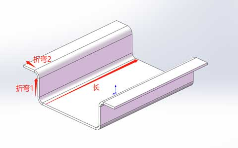 举一个简单的例子,下图的钣金件中总长和折弯1、折弯2的长度是逻辑关系的,也就是说总长确定了,那折弯1、2的长度也就确定了。该零件结构比较简单,变化规则也很简单,所以无需优化建模方式(想了解建模优化的请看之前的文章)。确定主参数为总长,确定折弯1、2的长度与总长之间的逻辑关系,将模型的属性信息填写规范,我们就可以制定参数表了。