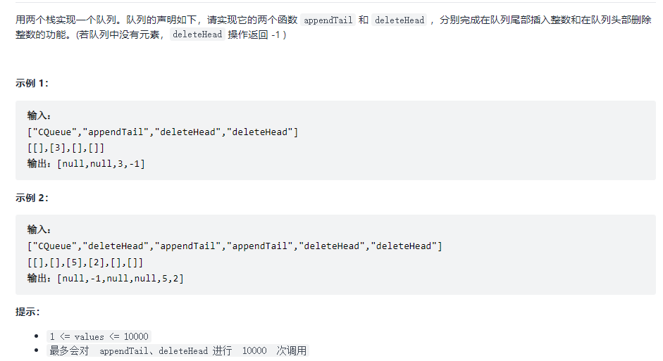 剑指Offer 09. 用两个栈实现队列