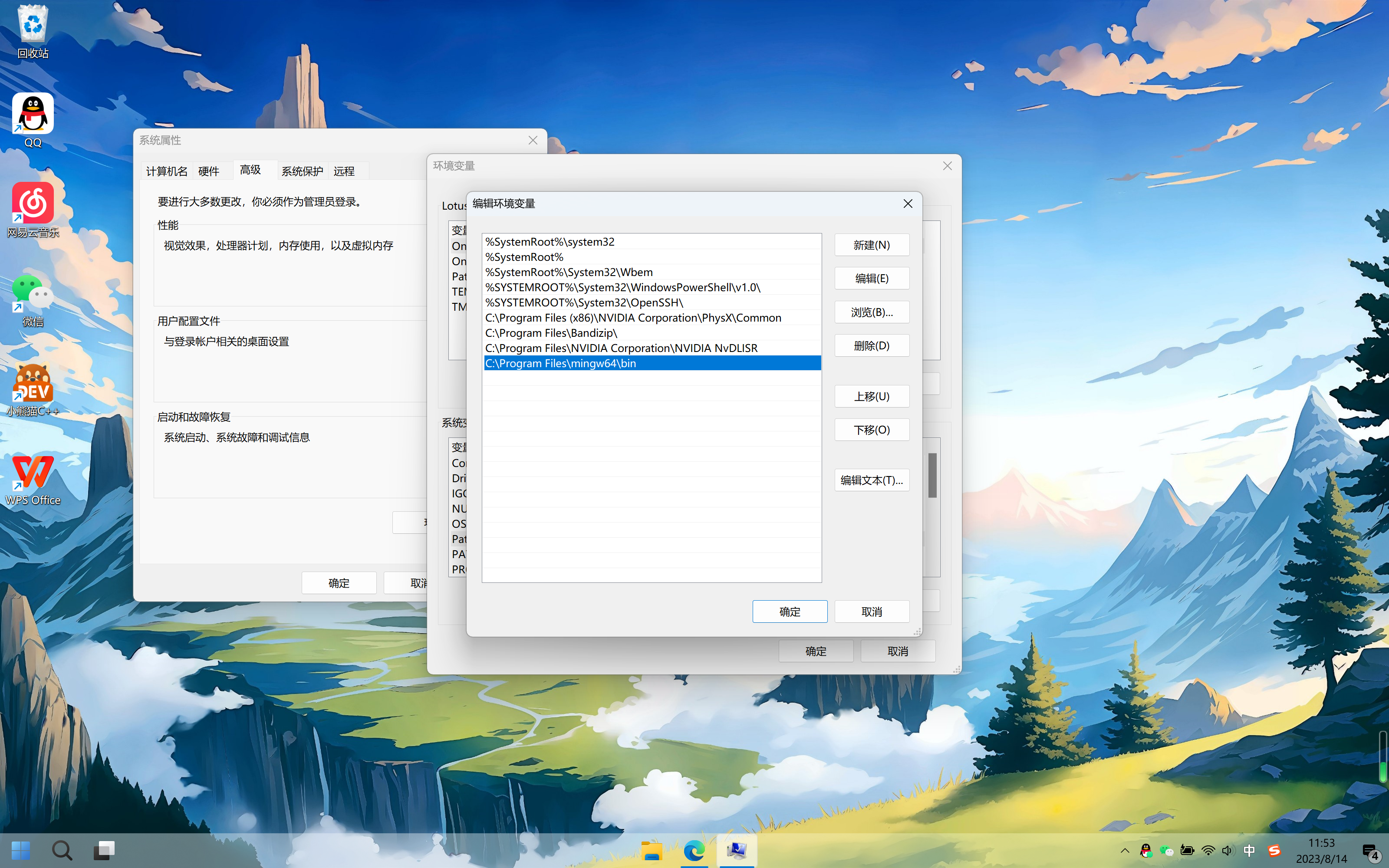 点击“环境变量”,然后双击下面的“Path”(下图)