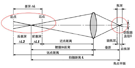 焦点前后各有一个容许弥散圆,这两个弥散圆之间的距离就叫焦深。以此推到被摄主体,相对于对焦点的前后,其影像也有一段清晰范围的就是景深。
