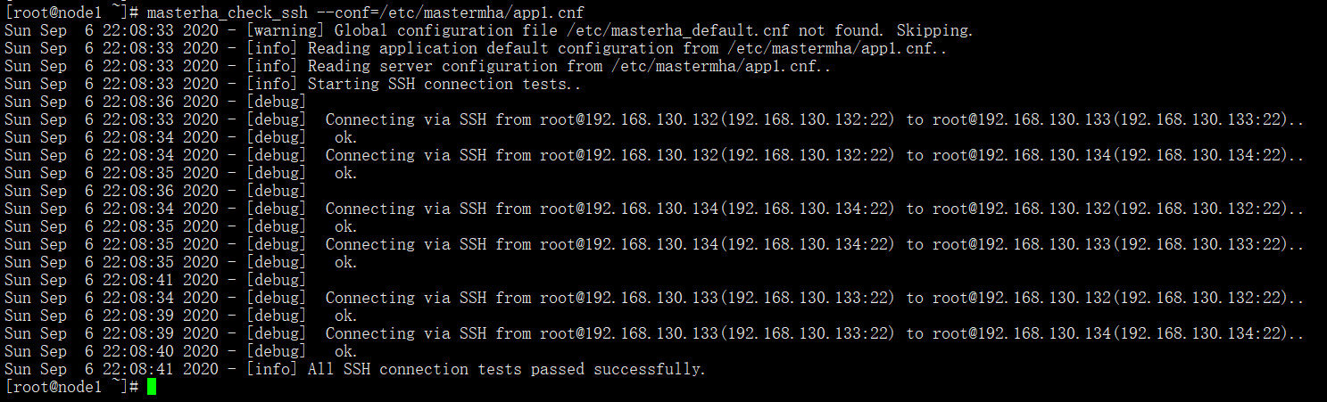 masterha_check_ssh --conf=/etc/mastermha/app1.cnf