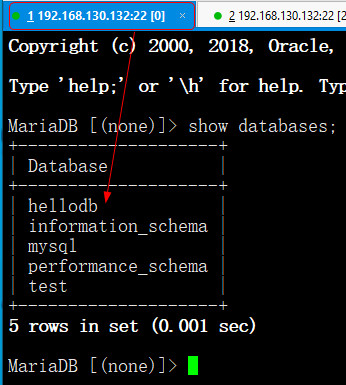 2、MariaDB一主一从架构构建。准备两台纯新的CentOS7.6服务器,其中主机称为node1的服务器地址为192.168.130.132,主机称为node2的服务器地址为192.168.130.133。