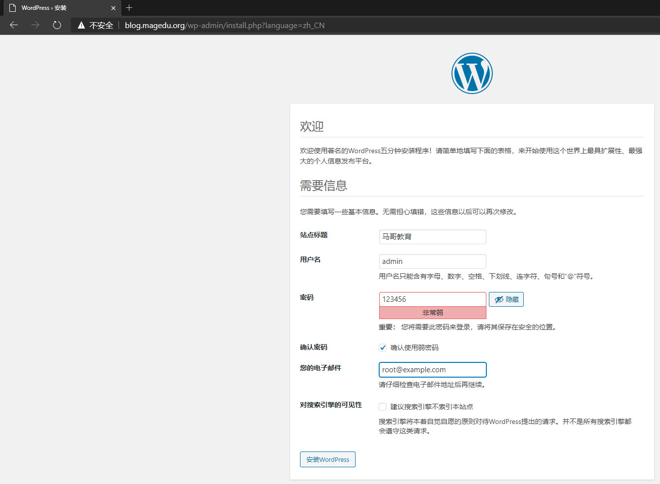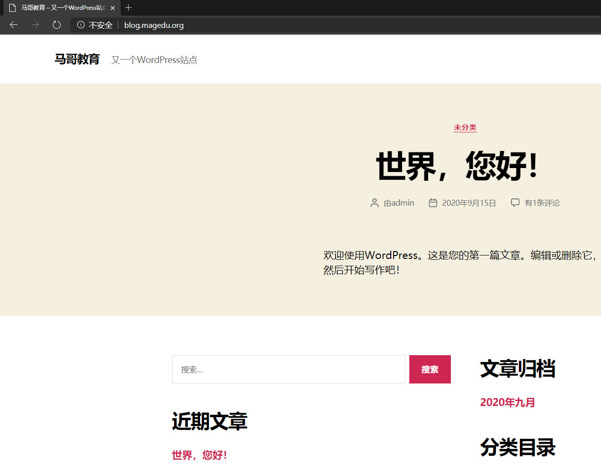 正常进入wordpress,完成。