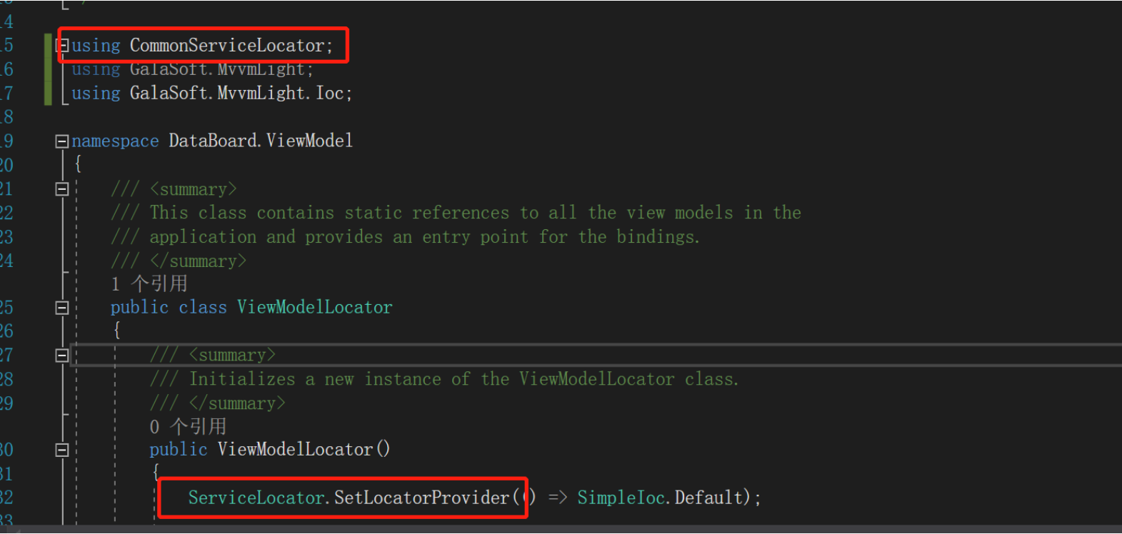 原先的ServiceLocator的引用,添加CommonServiceLocator名空间