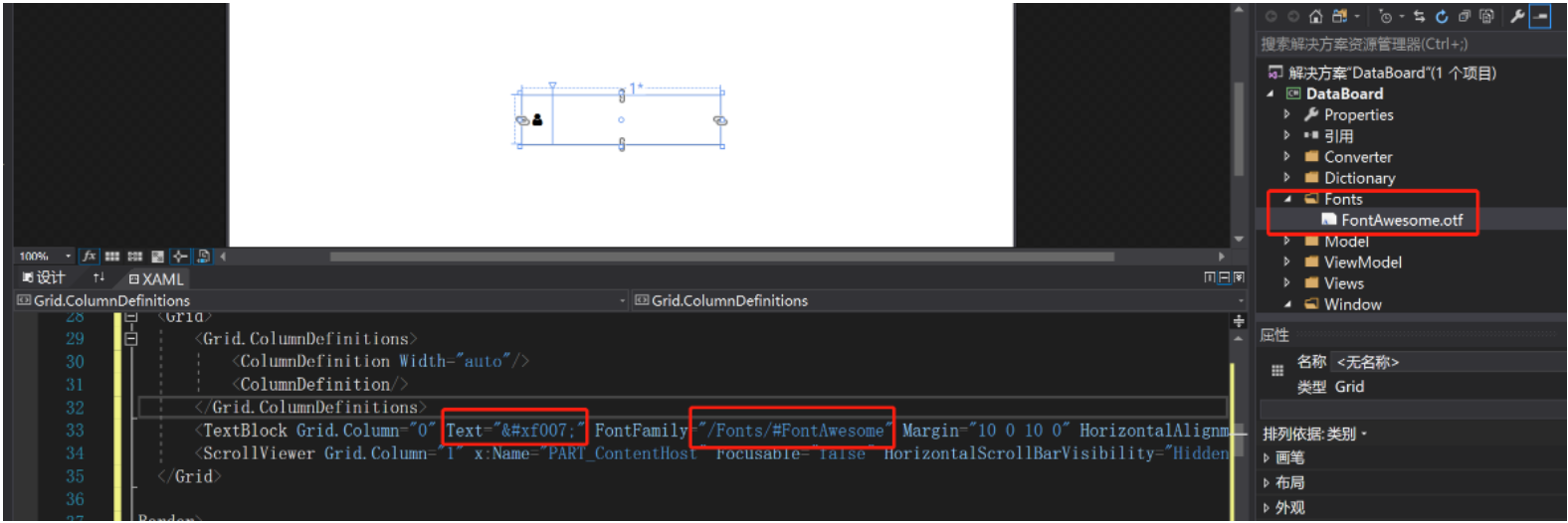 在textBlock中将对应otf文件地址添入FamilyFont,在text中添加入图标的代码即可生成图标