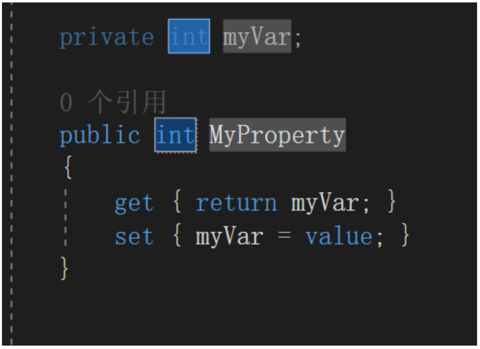 propfull+tab键可以自动生成如下代码