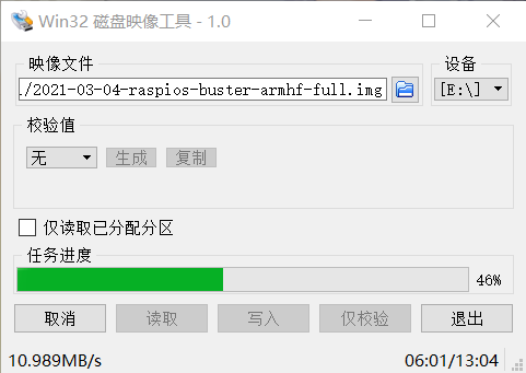 3. 通过Win32DiskImager选择镜像并写入sd卡