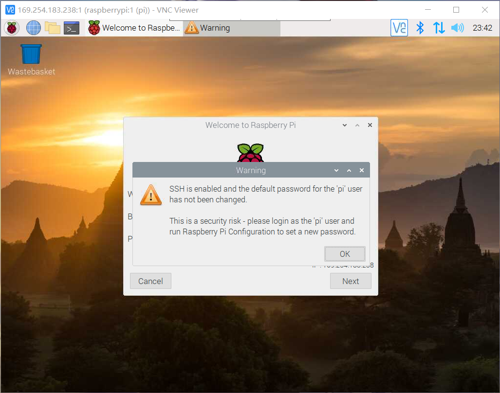 电脑端在vnc软件中使用该地址连接,即可看到图形界面及初始化配置。