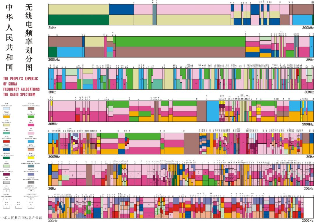 为了合理的利用和规划频谱,每个国家都有自己的无线电频率划分图