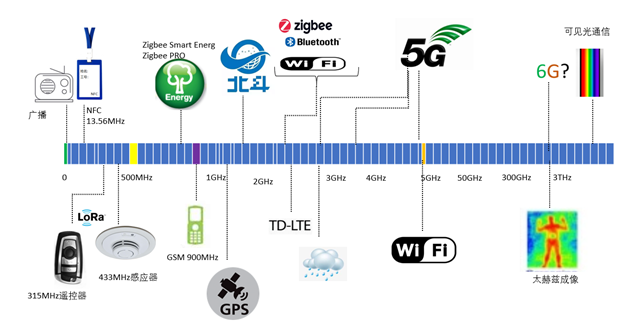 由于优质频谱的有限性以及无线应用的丰富性,一些无线技术采用的的频谱可能是重合的,从而可能导致干扰和影响:例如2.4G中的BLE,Zigbee, WiFi存在冲突和相互影响
