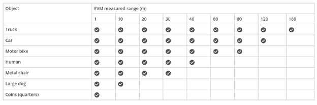 不同物体检测范围: