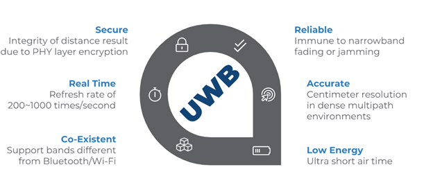 UWB技术可以与蓝牙低功耗(BLE)和近场通信(NFC)等其他连接技术结合使用,可在手机和其他可穿戴设备中使用,甚至可以在设备锁定或解锁门时使用。