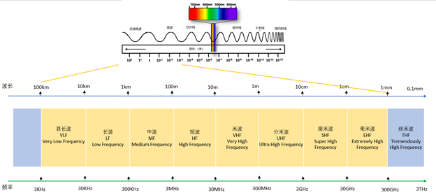 超高频带宽范围广,传送数据速度快。同毫米波应用于毫米波雷达类似,厘米波也可以用于厘米波探测雷达,例如车载雷达常用的频段主要集中在24GHz和77GHz。