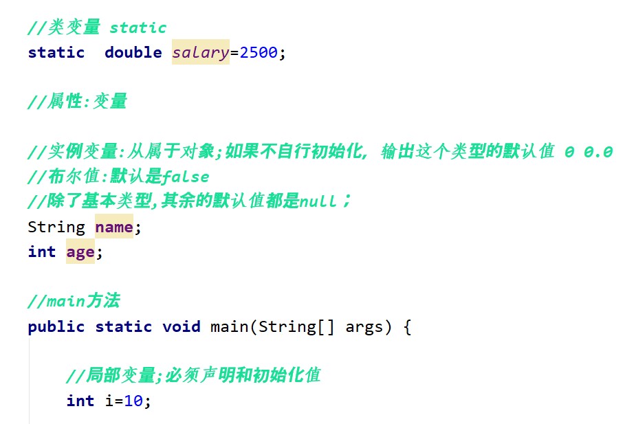 - 类成员变量:首字母小写和驼峰原则:monthSalary 除了第一个单词以外,后面的单词首字母大写 lastName