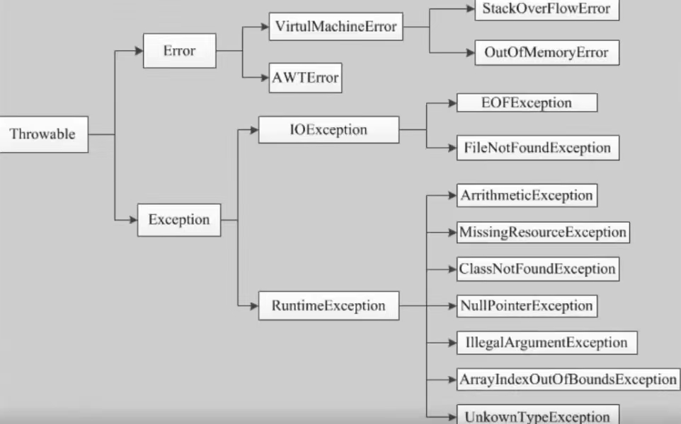 - Java把异常当作对象来处理,并定义一个基类java.lang.Throwable作为所有异常的超类