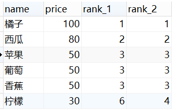 RANK() OVER (ORDER BY price DESC) AS rank_1,