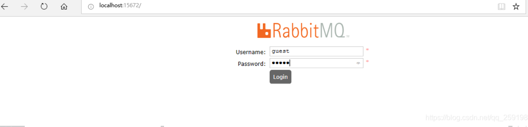 2.4 打开浏览器,地址栏输入mq访问地址,即可看到管理界面的登陆页