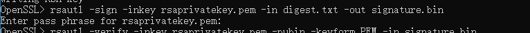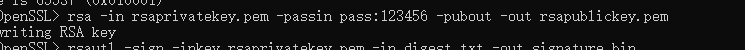 (3)利用上述私钥对摘要digest.txt进行签名,生成签名文档signature.bin