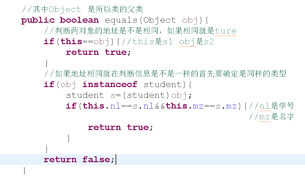 如果在子类中没有重写 equals 那么就会默认调用Object中的 equals方法 如果在子类中重写了之后就会调用子类中的equals方法。