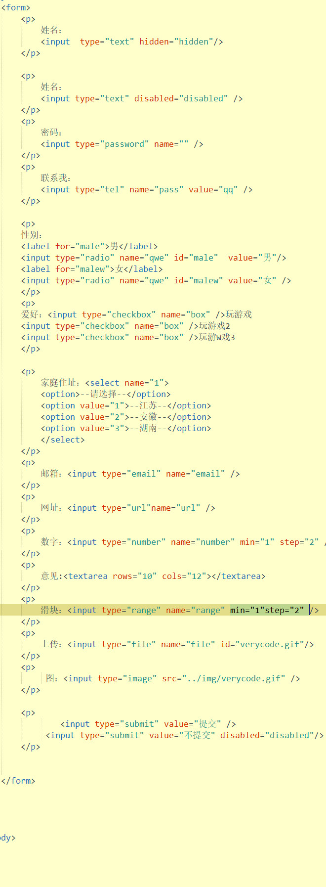 | value | 元素的初始值。type 为 radio时必须指定一个值 |