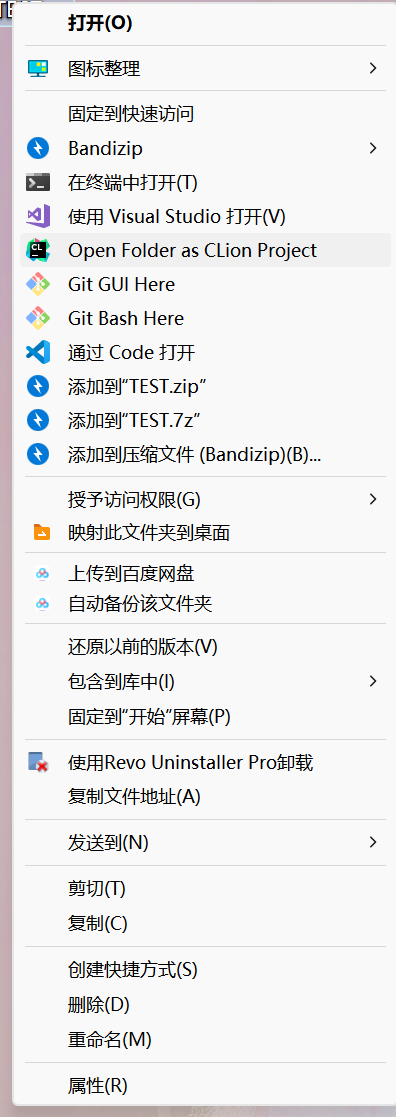 第一步:解压后的文件夹右键,使用CLion打开