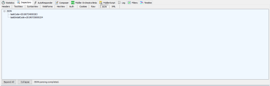 检查器面板。提供Headers、Textview、Hexview、Raw、JSON等多种方式查看单条http请求的请求报文的信息: