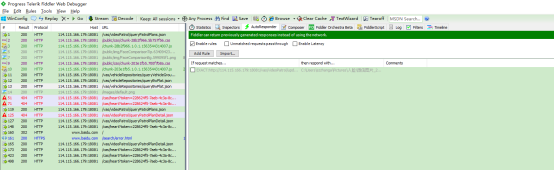 自动响应面板。允许拦截指定规则的请求,并返回本地资源或Fiddler 资源,从而代替服务器响应。