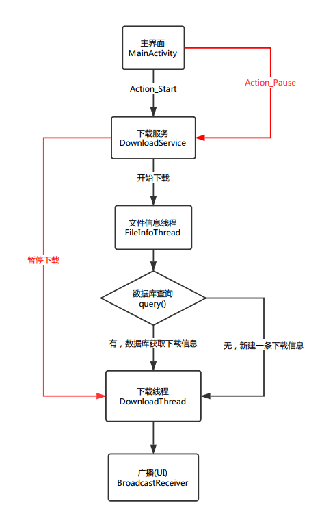 利用service多次启动只调用onStartCommand()方法,处理开始或暂停下载逻辑。