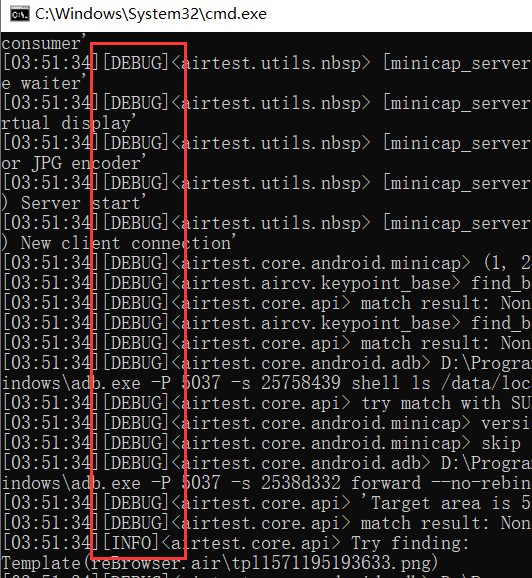 在脚本运行的时候, Airtest 默认会刷新很多log信息,如下图所示: