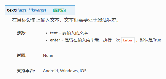 同理,如需输入后回车,则 text("文本",enter=True) ,不需要回车则, text("文本",enter=False) 。