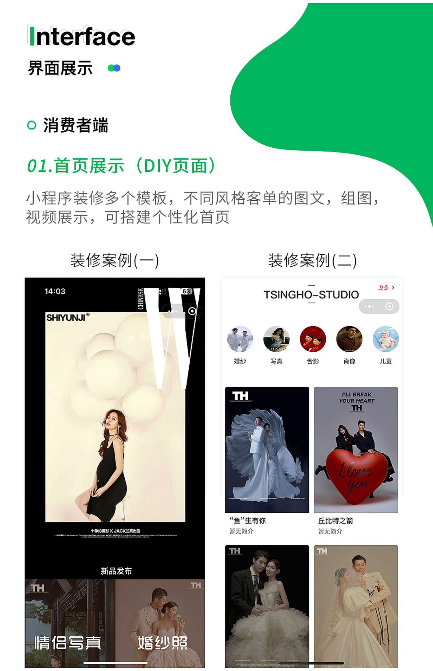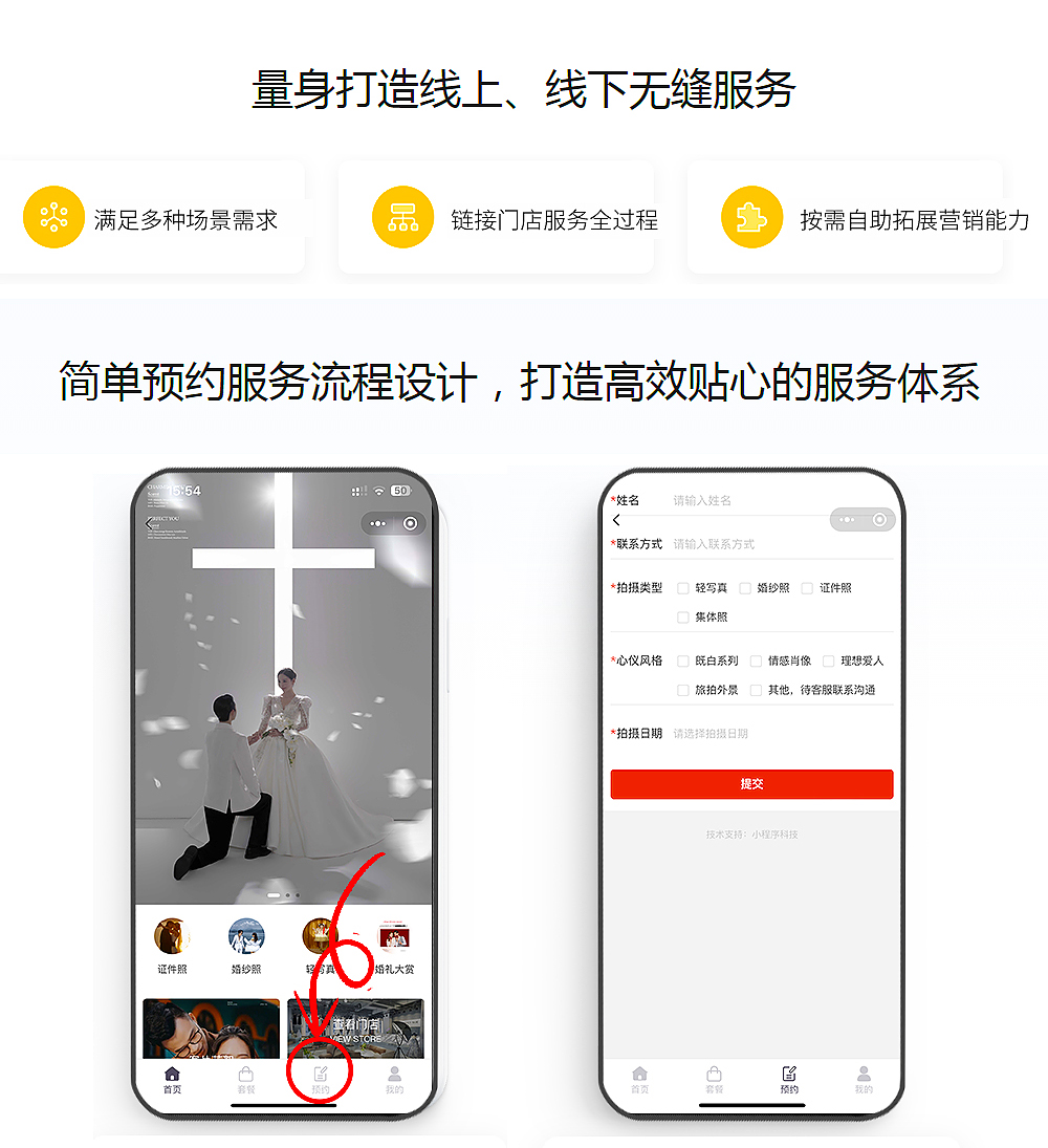 拍摄预约小程序,写真影楼小程序,婚庆婚纱照相馆小程序,源码开发定制