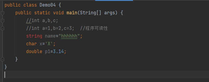 //数据类型 变量名=值;可以使用逗号隔开来声明多个同类型变量