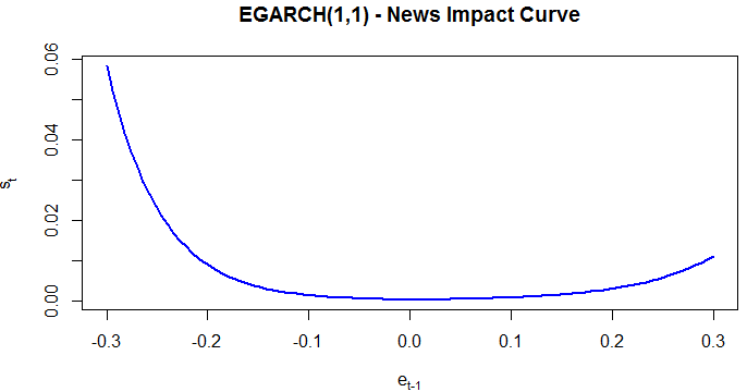 main = 'EGARCH(1,1) - News Impact Curve', ylab = nic.egarch11$yexpr,