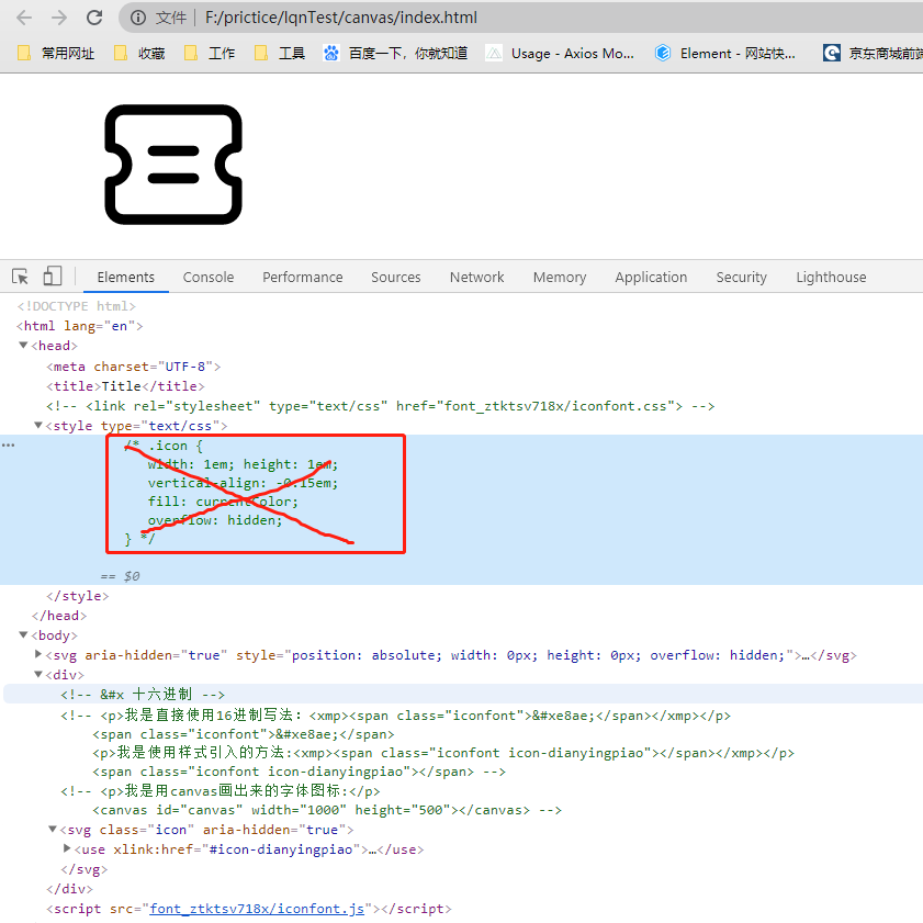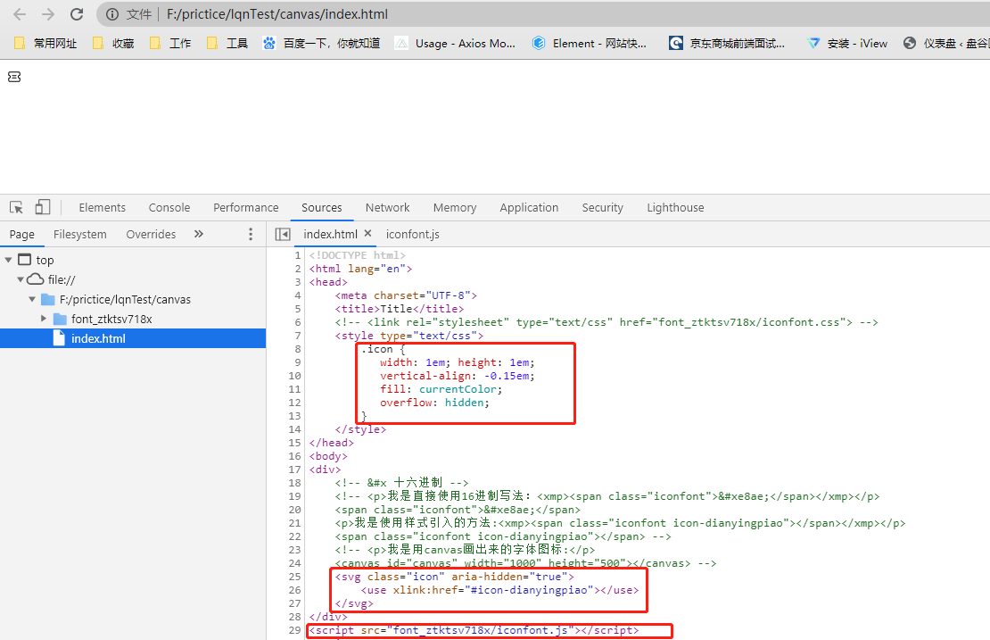 <!DOCTYPE html> <html lang="en"> <head> <meta charset="UTF-8"> <title>icon</title> <style type="text/css"> .icon { width: 1em; height: 1em; vertical-align: -0.15em; fill: currentColor; overflow: hidden; } </style> </head> <body> <div> <svg class="icon" aria-hidden="true"> <use xlink:href="#icon-dianyingpiao"></use> </svg> </div> <script src="font_ztktsv718x/iconfont.js"></script> </body> </html>