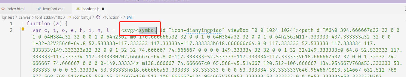 symbol:象征,标识的意思,这个symbol可不是ES6中的symbol,不知道是不是我百度的姿势有问题始终找不到symbol使用的精髓,所以我格式化了一下iconfont.js文件,然后我发现了我熟悉的html标签, 我立刻去百度svg symbol
