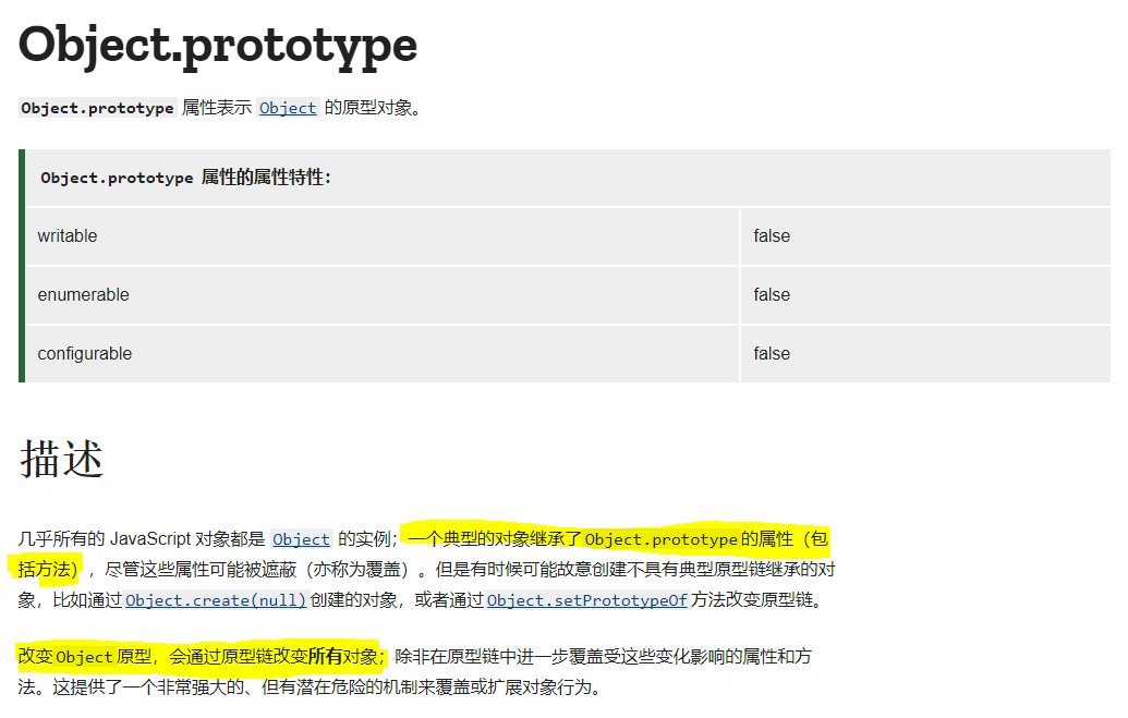 解答:首先我们看一下Object.prototype的官方解释,Object.prototype确实是Object的原型对象