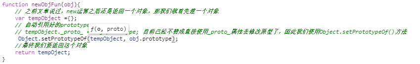 function newObjFun(obj){ // 之前文章说过,new运算之后还是返回一个实例对象,那我们就首先建一个对象 var tempObject ={}; // 自动引用好的prototype // todo ? //最终我们要返回这个对象 return tempOject; }