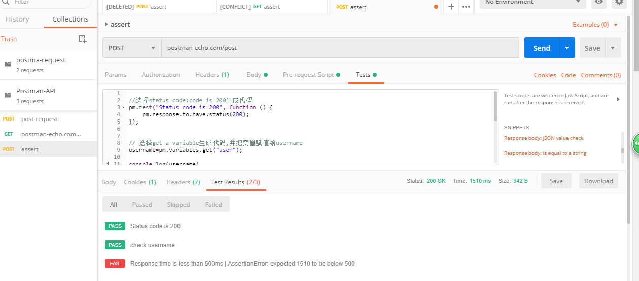 方法2.在collection 中选择三角形,点击run,在点run.....