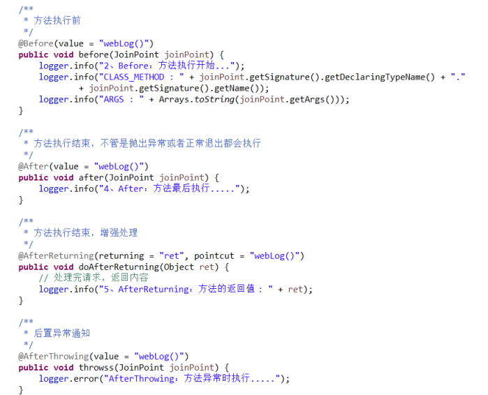 2)在每一个方法的开始和结尾部分都会添加一句日志打印。