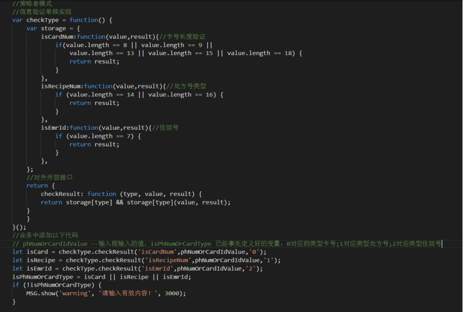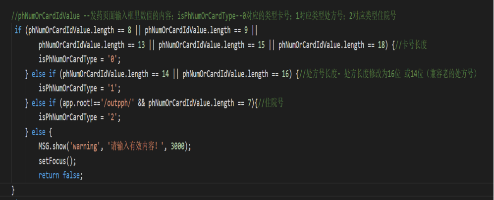 2)列如场景:药品发药功能,根据页面输入框输入值的长度判断输入的是卡号还是处方或者住院号。