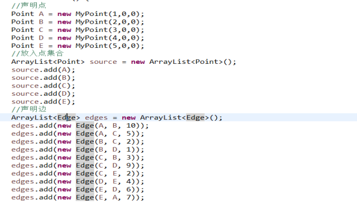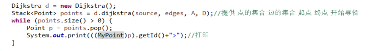 /** * dijkstra 算法实现 * @param source 点 * @param edegs 边 * @param start 寻径的起点 * @param end 需要寻的终点 * @return */ public Stack<Point> dijkstra(ArrayList<Point> source, ArrayList<Edge> edegs, Point start, Point end)