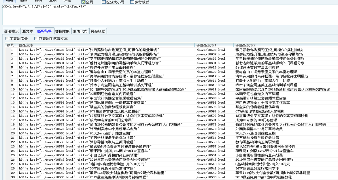 4)首先是h3开头。其次是a标签。然后到title。如此得出以下正则文本。