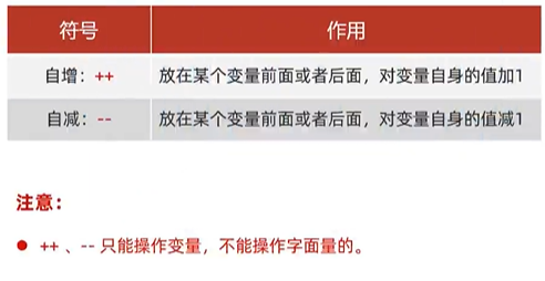 // 2++; // 自增自减只能操作变量不能操作字面量的,会报错!