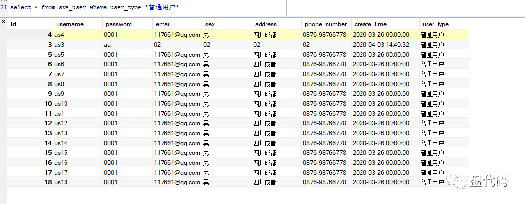 我们的数据实际是存储在MySql数据库中的某个表中,用sql查询的结果如下图所示: