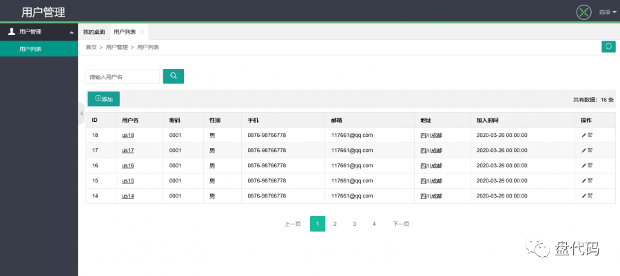 原计划本节学习的是编辑和删除用户信息,在案例开发过程中发现先把数据列表读取出来,再对列表的数据进行删除或修改更为合理,所以调整下学习顺序,先进行数据分页查询的学习,再对数据进行编辑和删除。