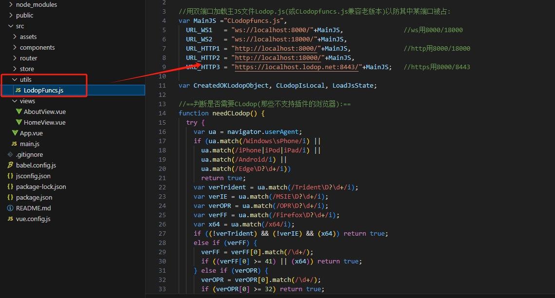 第二步 新建LodopFuncs.js 我也放在了utils里面了