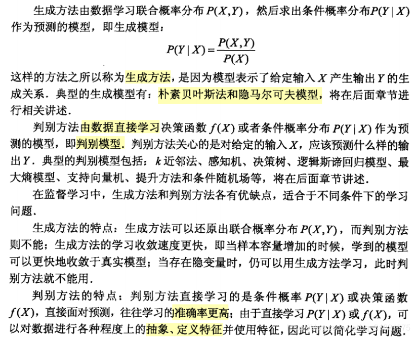 判别方法:由数据直接学习决策函数Y=f(X)或条件概率分布P(Y|X)作为预测模型,即判别模型。判别方法关心的是对于给定的输入X,应该预测什么样的输出Y。