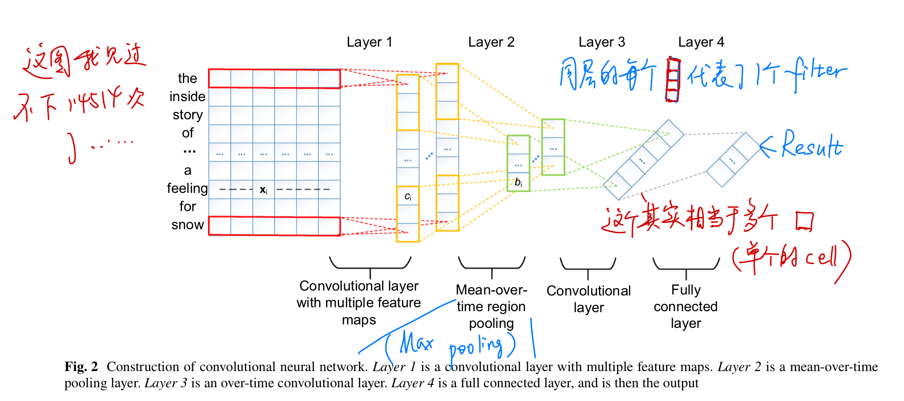 推荐系统直接采用Latent Factor Model:如上图,R矩阵为学生对书籍的rating,可以分解成U和V两个矩阵,其中U代表学生的preference,V代表书籍的feature。与传统的latent factor模型不同,在将R分解为U和V之后,论文不是从U和V的层面去生成推荐结果,而是把V作为模型的training output,用CNN接受文本输入作为training input;而文章假设学生的偏好不变,这样就可以通过在测试集上面运行CNN得到V',再进行UV'=R',来计算error。整个模型如下图所示。