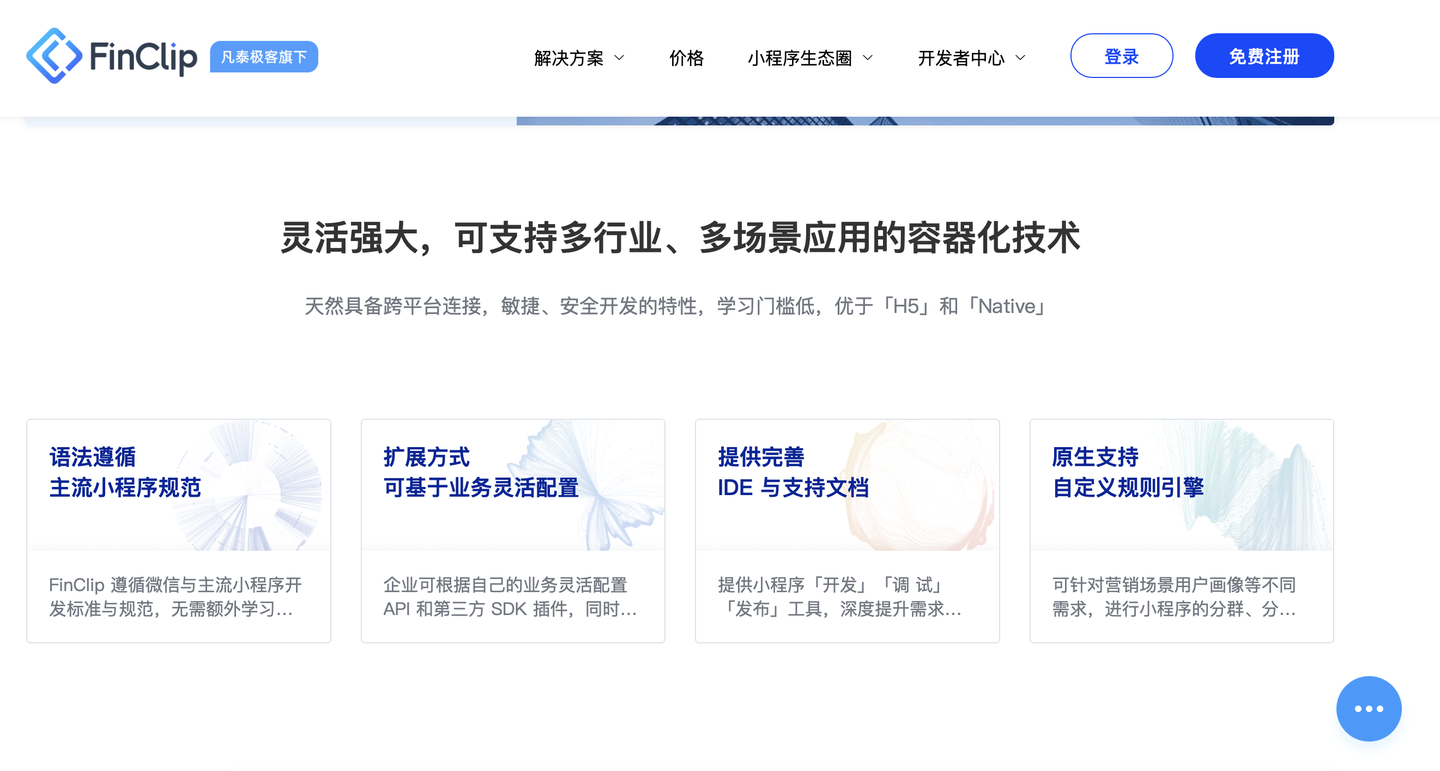 FinClip凭借插件化、嵌入式、轻量而灵活的产品特点及行业领先优势已经赋能银行、证券、政企、IOT、电商、航空、园区、零售等多个行业,在无界开放银行、数字券商、监管与合规科技、电子政务、信创等方面形成较有特色的创新应用案例。现在登陆官网点击咨询即可获得行业解决方案!👉:https://www.finclip.com